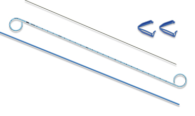 Мочеточниковый стент двухпетлевой представляет собой гибкую, рентгеноконтрастную трубку с открытым спиральным дистальным концом. Размер 8,0 СН, длина 28 см. Дренажные отверстия расположены с интервалами от 5 до 20 мм. Стент маркирован непрерывной рентгеноконтрастной линией, указывающей направление катушки дистального наконечника. Проволочный проводник изготовлен из нержавеющей стали с тефлоновым покрытием, с гибким наконечником (длина 100-150 см). Стилет-катетер 45 см длиной.
