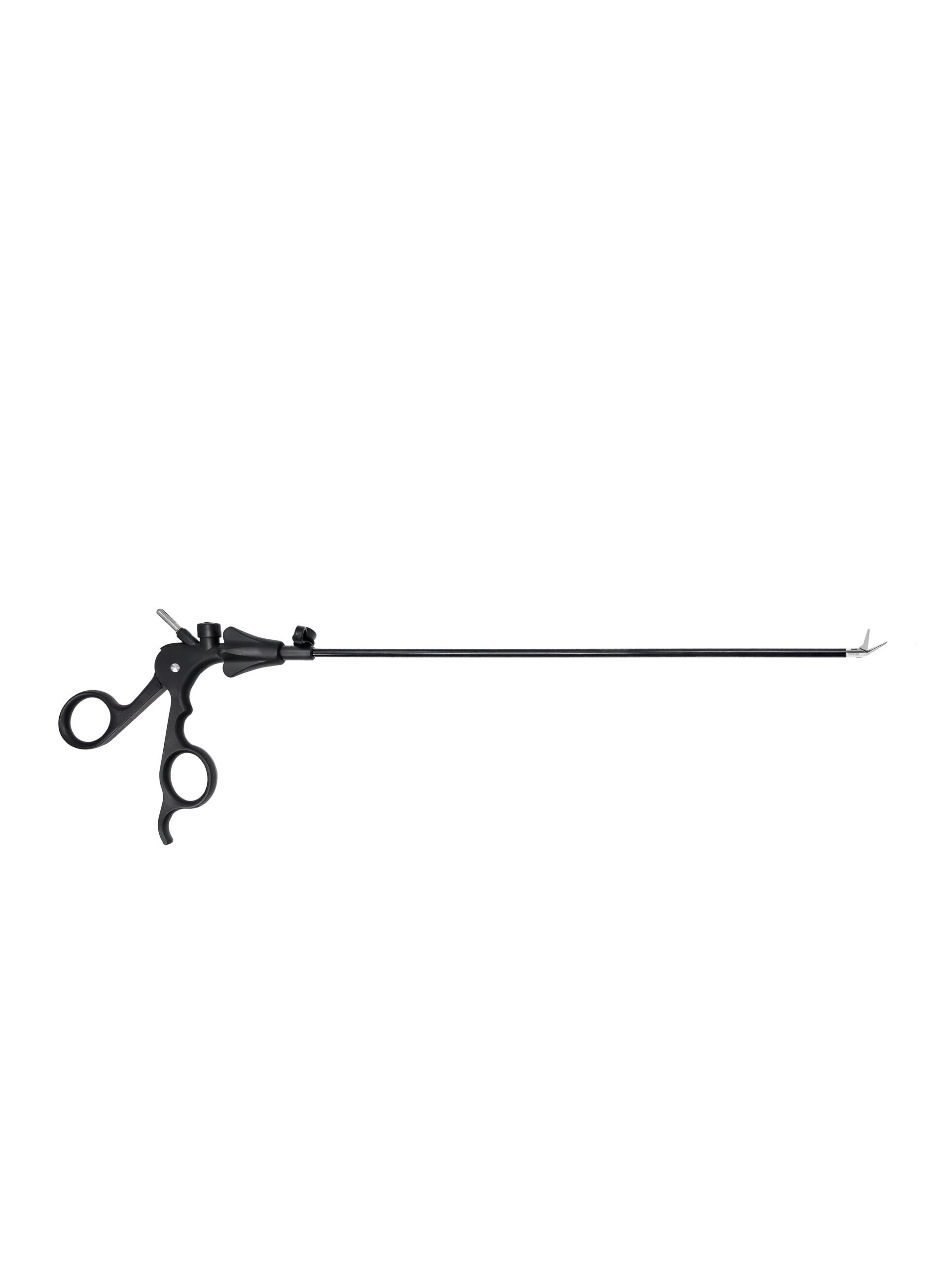 Рабочая длина 330 ± 2 мм , диаметр 5 мм. Однобраншевые (одна подвижная бранша), длина бранш 14 мм, бранши изогнуты по ребру. Монополярный разъем для комфортной работы направлен под углом 45 гр Инструмент разборный на 3 части: рукоятка, наружная трубка с тефлоновой изоляцией, рабочая тяга. Байонетное соединение тяги с тубусом. Рукоятка диэлектрическая с кнопкой для быстрого отсоединения тяги с тубусом. Угол вращения рабочей части вокруг своей оси 360 градусов. Диаметр монополярного разъема на рукоятке 4 мм.