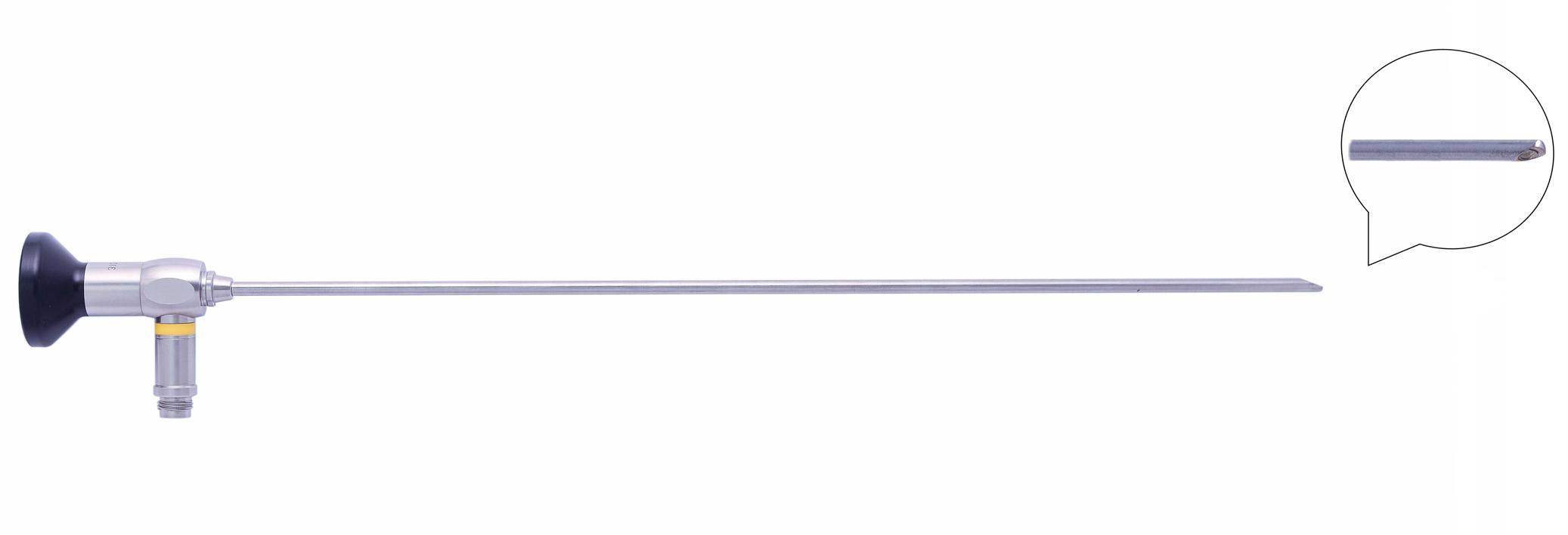 Диаметр рабочей части 4 мм ± 0,1, длина рабочей части 175 мм ± 10, угол направления зрения 0 градусов, входной угол поля зрения не менее 80 градусов, угол наклона световодного разъема к оси оптической трубки 90 градусов. Сапфировое стекло на дистальном и проксимальном концах. Тип оптической схемы - стержнелинзовая. Корпус из нержавеющей стали. Цветовой код зеленый. Автоклавируемая 134°С; 2,3 бар. Встроенный стекловолоконный световод. Количество циклов стерилизации автоклавированием гарантированное производителем не менее 1000. Совместимость со световодами стандартов Шторц, Р. Вольф, Акми. Full HD совместимый. Совместимость с головками видеокамер стандарта «C-mount» и «J-lock». Антирефлексное внутреннее покрытие. Термический компенсатор длины.