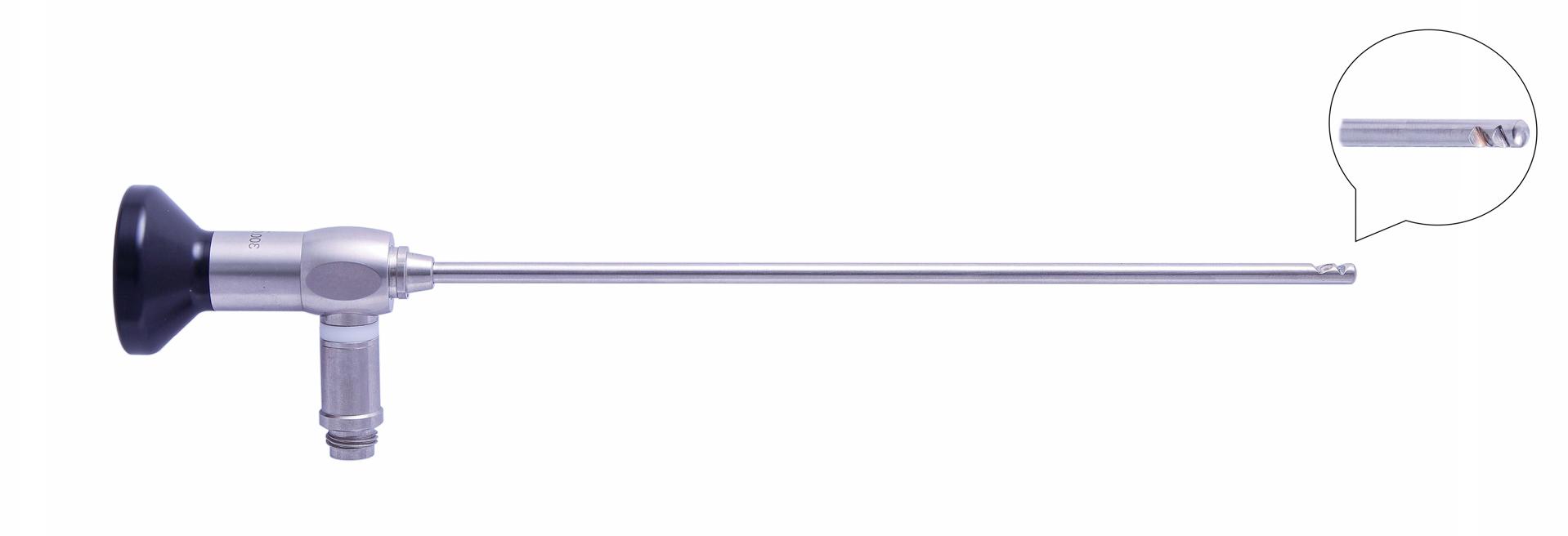Диаметр рабочей части 4 мм ± 0,1, длина рабочей части 175 мм ± 10, угол направления зрения 110 градусов, входной угол поля зрения не менее 80 градусов, угол наклона световодного разъема к оси оптической трубки 90 градусов. Сапфировое стекло на дистальном и проксимальном концах. Тип оптической схемы - стержнелинзовая. Корпус из нержавеющей стали. Цветовой код желтый. Автоклавируемая 134°С; 2,3 бар. Встроенный стекловолоконный световод. Количество циклов стерилизации автоклавированием гарантированное производителем не менее 1000. Совместимость со световодами стандартов Шторц, Р. Вольф, Акми. Full HD совместимый. Совместимость с головками видеокамер стандарта «C-mount» и «J-lock». Антирефлексное внутреннее покрытие. Термический компенсатор длины.