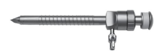 Рабочая длина 110 ± 2 мм, общая длина 170 ± 2 мм, диаметр 10 мм, форма клапана - магнитная. Наличие винтовой нарезки на канюле для лучшей фиксации троакара. Наличие крана для газоподачи с замком типа «LUER». Материал – нержавеющая сталь. В комплекте со стилетом: рабочая длина 190 ± 2мм, диаметр 10 мм, заточка стилета - пирамидальная. Материал – нержавеющая сталь.