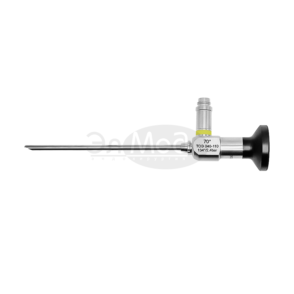 Диаметр рабочей части 4 мм ± 0,1, длина рабочей части 110 мм ± 10, угол направления зрения 70 градусов, входной угол поля зрения не менее 80 градусов, угол наклона световодного разъема к оси оптической трубки 90 градусов. Сапфировое стекло на дистальном и проксимальном концах. Тип оптической схемы - стержнелинзовая. Корпус из нержавеющей стали. Цветовой код желтый. Автоклавируемая 134°С; 2,3 бар. Встроенный стекловолоконный световод. Количество циклов стерилизации автоклавированием гарантированное производителем не менее 1000. Совместимость со световодами стандартов Шторц, Р. Вольф, Акми. Full HD совместимый. Совместимость с головками видеокамер стандарта «C-mount» и «J-lock». Антирефлексное внутреннее покрытие. Термический компенсатор длины.
